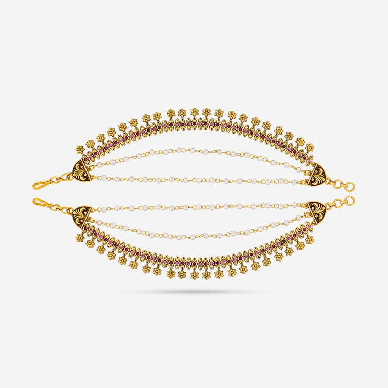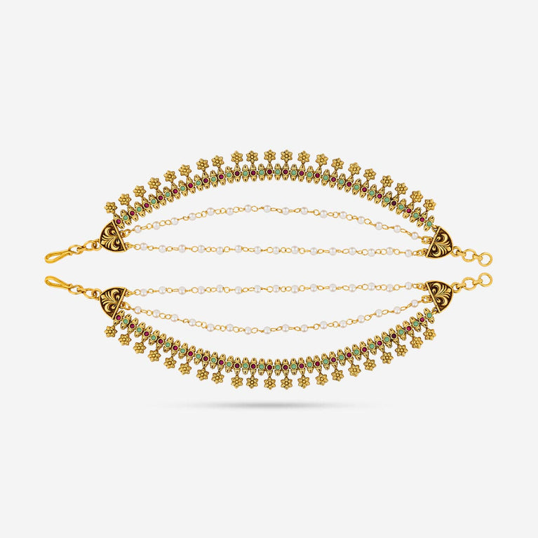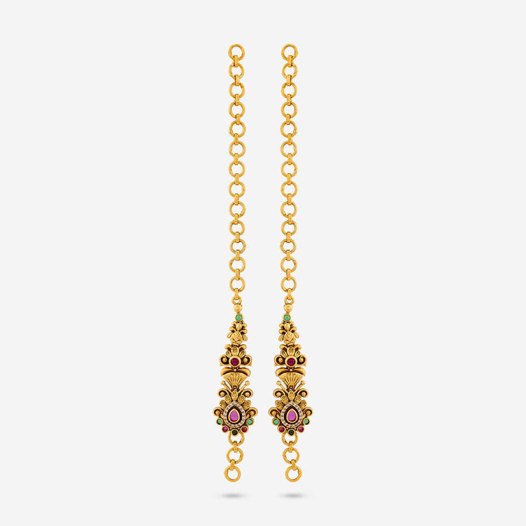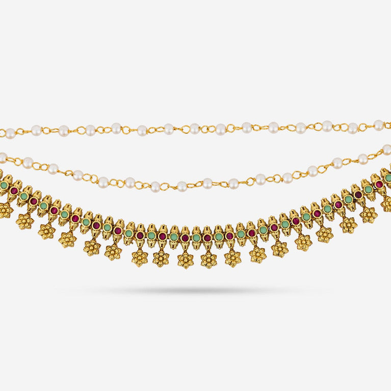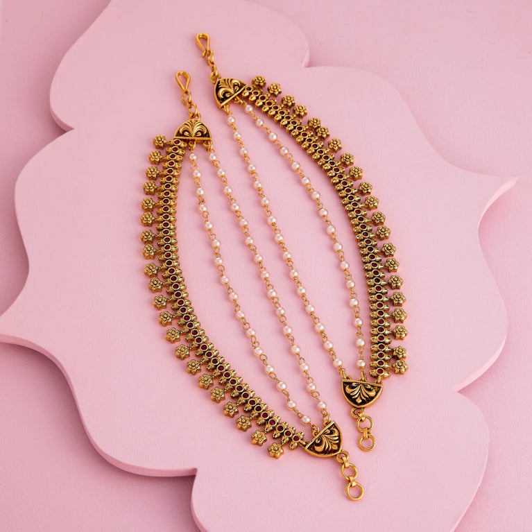 Flower Motif Antique NathGet ready to make a statement with this antique nath from Kushal's Antique Jewellery Collection. Crafted from a lightweight copper alloy base, it adds a touch of vintage charm to your look. It is available in three colour options: ruby, ruby-green and white. For a complete look, pair it with a dhoti-kurti set.