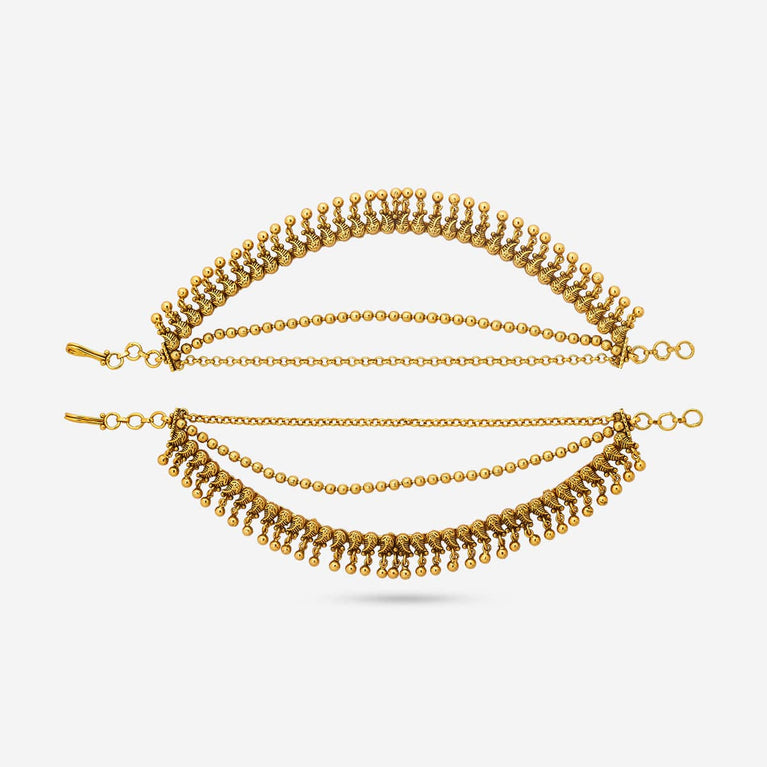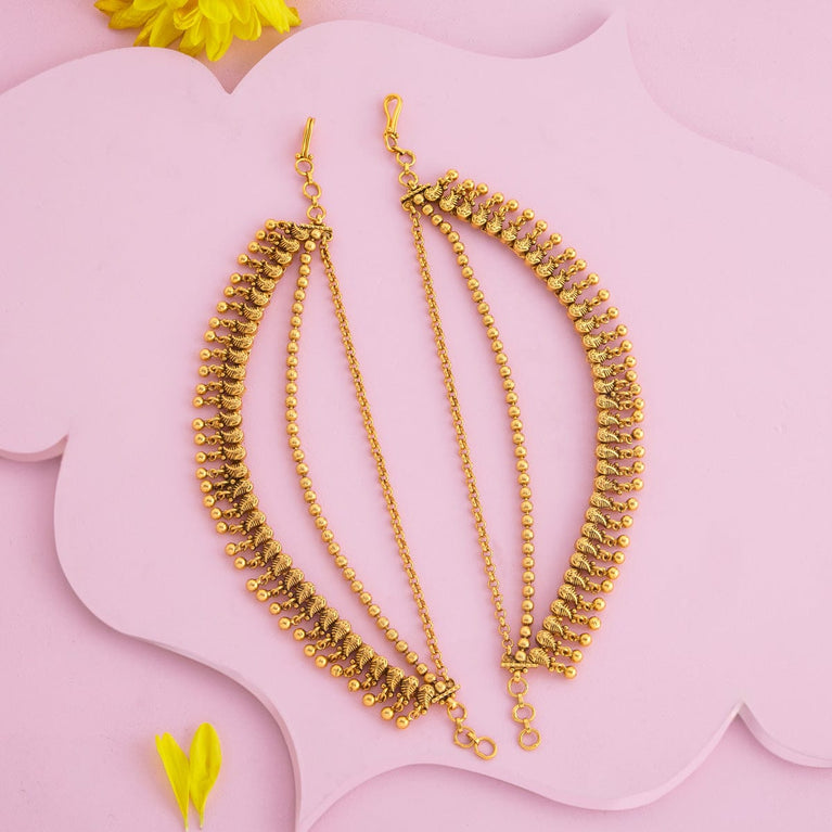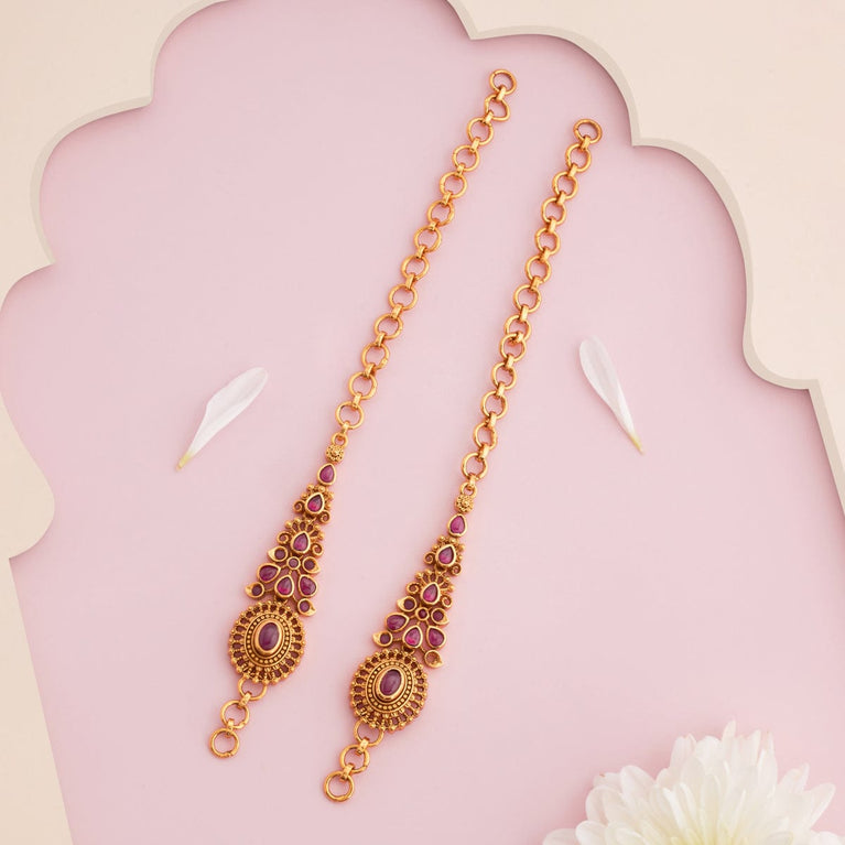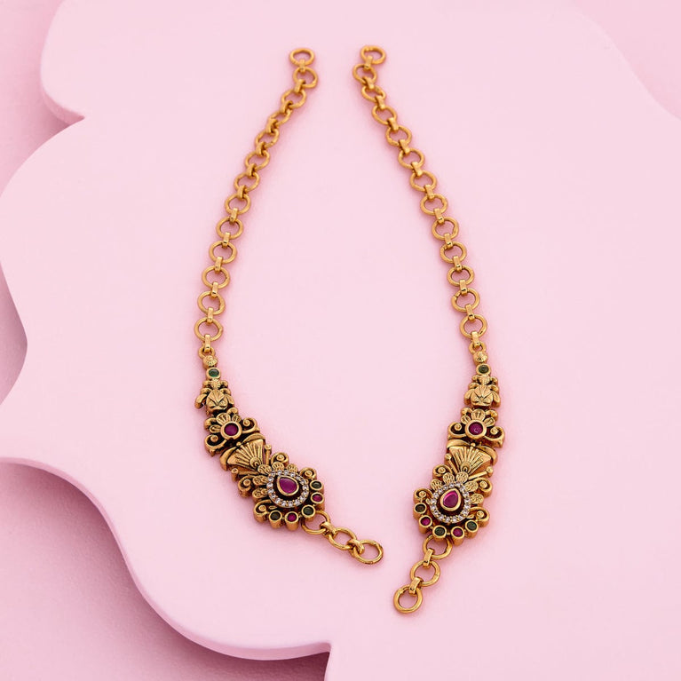 Antique Clip On NathSteal the spotlight with Kushal's antique nath. Featuring vibrant ruby or classic white stones and a chic gold polish, it’s designed to impress. Crafted from durable copper alloy with a secure pressing mechanism, this nath is both stylish and reliable. Perfect for adding a subtle yet sophisticated flair to any outfit.