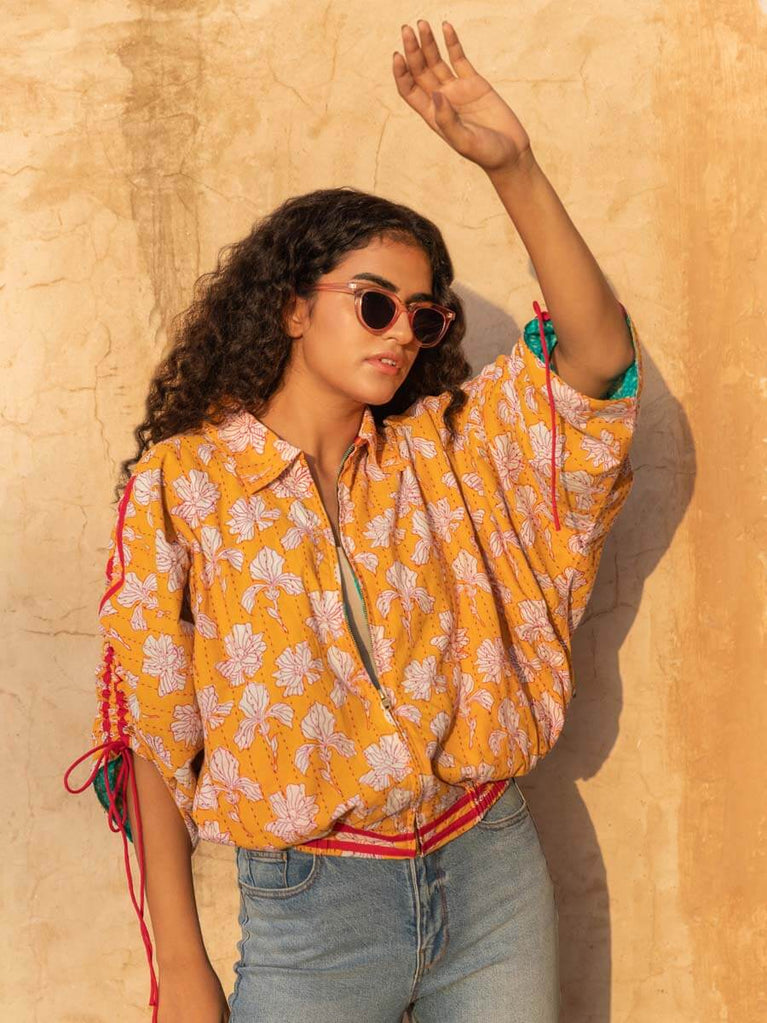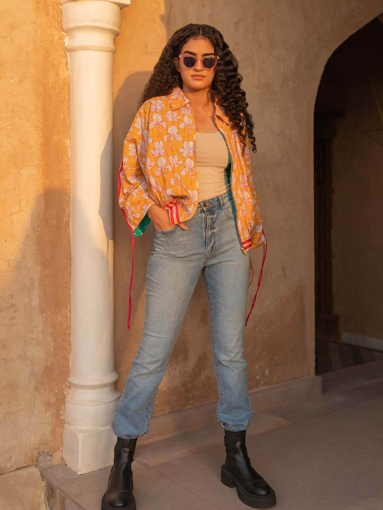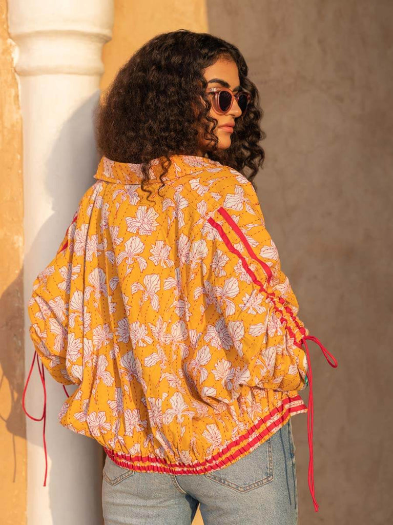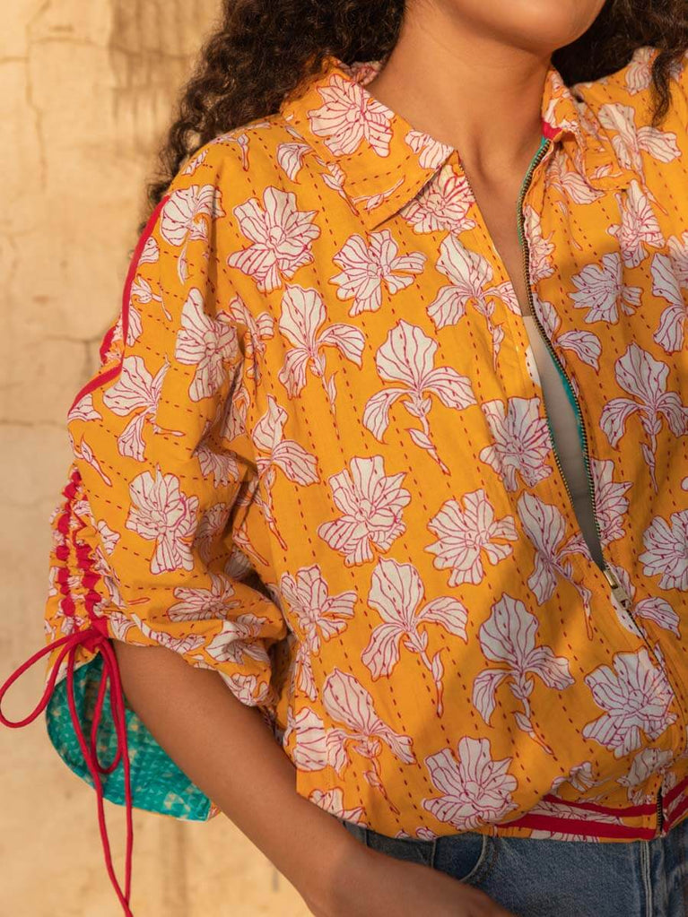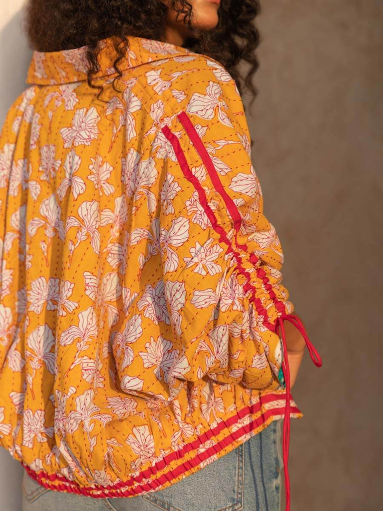 Corbett Kantha Embroidered Block Printed Bomber Jacket