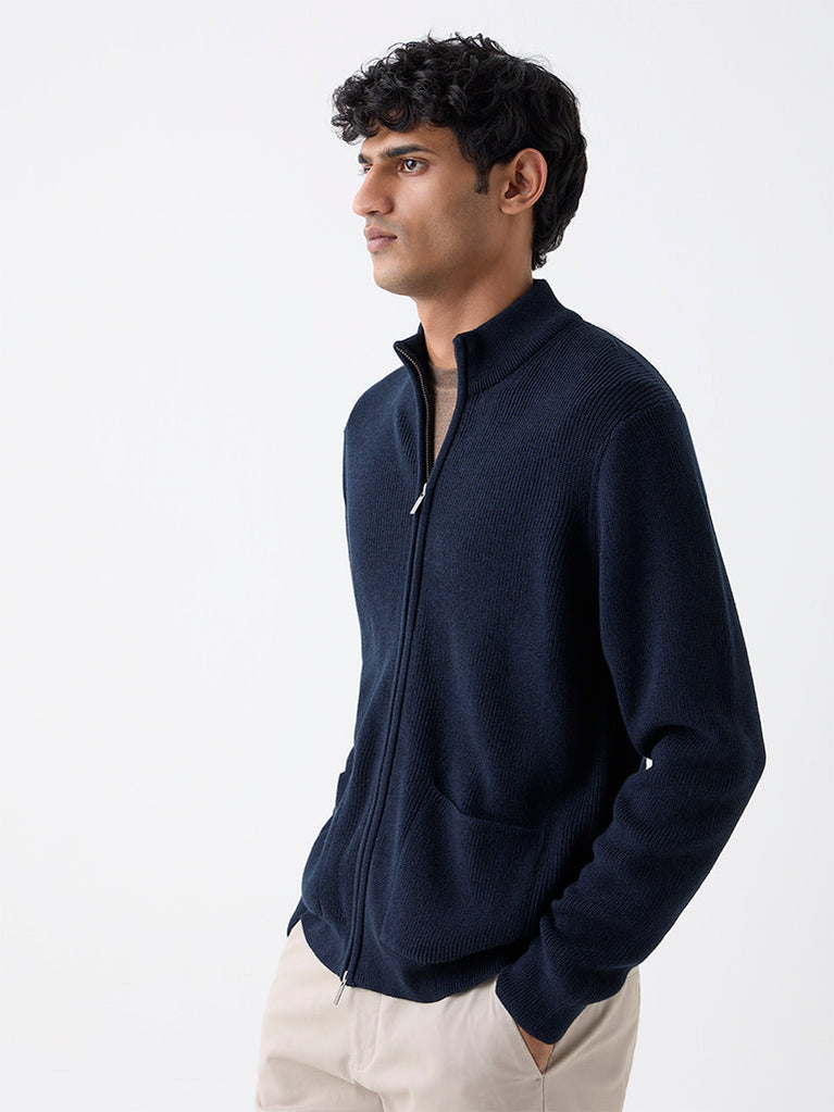Ascot Navy Knit-Textured Relaxed Fit Jacket