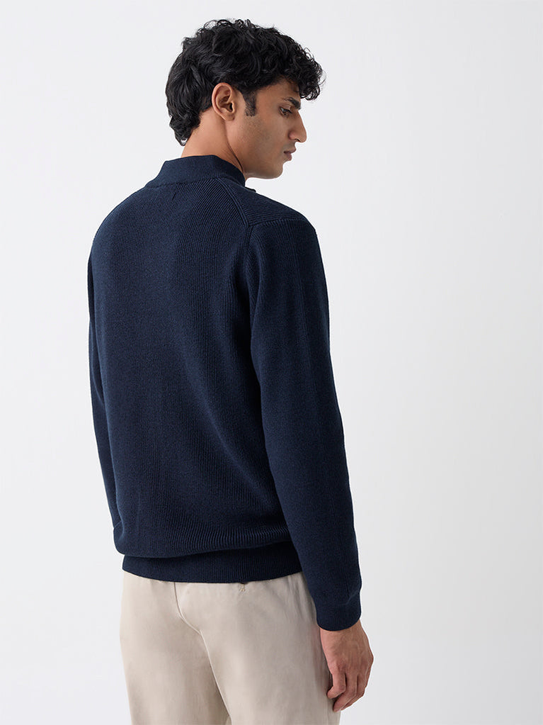 Ascot Navy Ribbed-Textured Relaxed-Fit Quarter-Zip Sweater