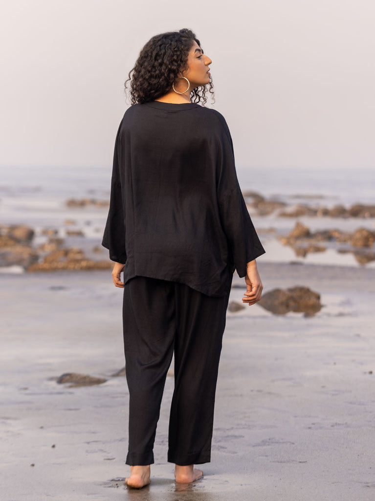 Neeru's Black Color Rayon Fabric Printed Kurta And Trouser