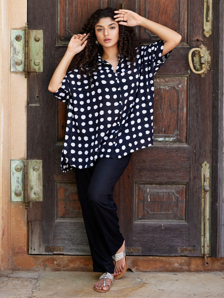 Set of 2 - December Black Polka Shirt and Trouser Set