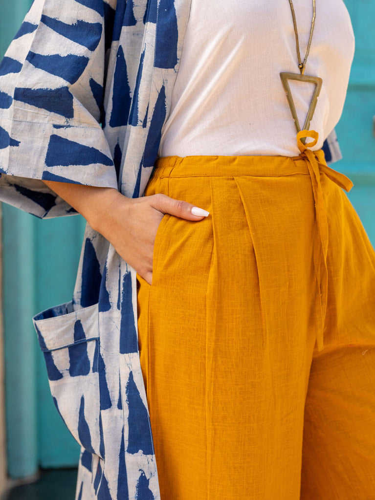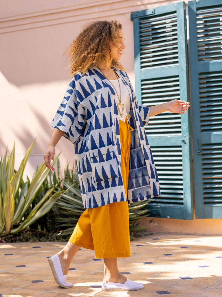 Set of 2 - Mimosa Indigo Dabu Kimono Jacket and Palazzo Pants