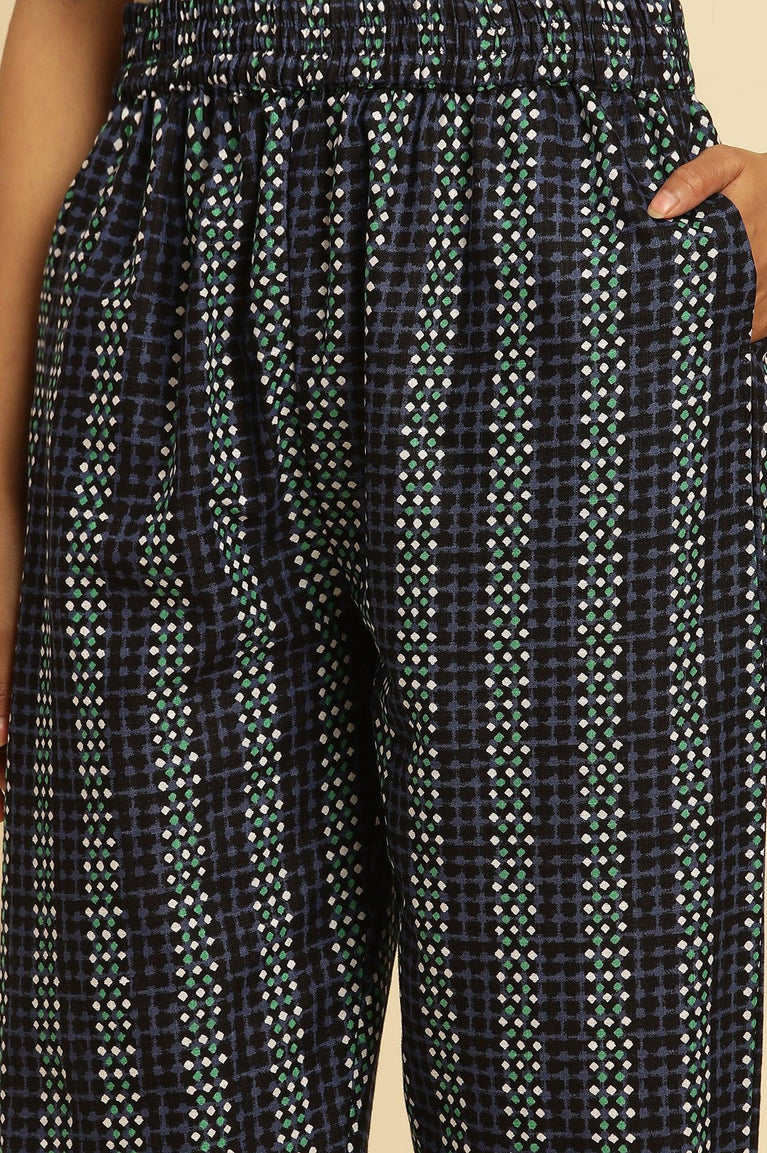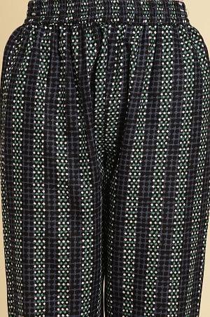 Lift Up Your Casual Look With This Stylish kurta Set. The Set Includes Blue Colour Block Printed Liva kurta In Round Neck And Straight Silhouette. It Is Paired With Green Printed Straight Palazzo Pants.