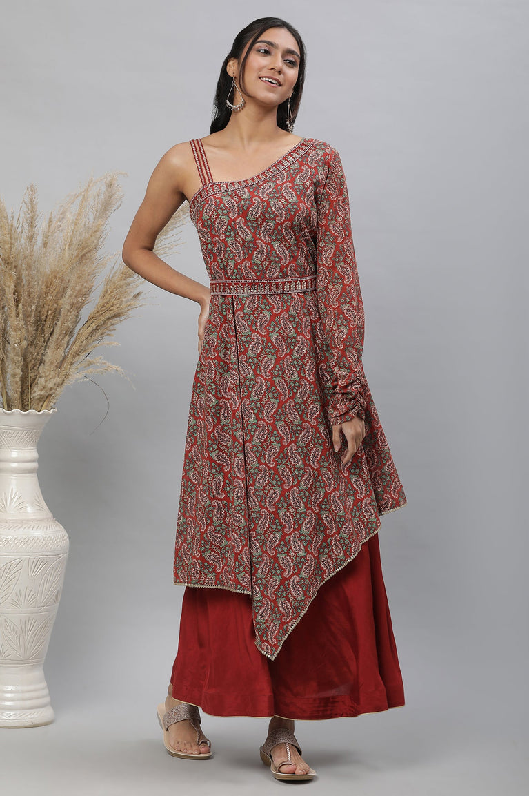 Brick Maroon Ethnic Dress