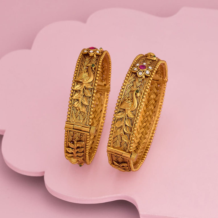 Kushal's Fashion Jewellery Peacock Motif Antique BeltClassic fashion will always remain incomplete without antique belts. These belts are made of distinguished copper alloy and synthetic stones (only ruby colour). The stones enhance its beauty, while the copper alloy ensures sturdiness. This product comes with stunning gold polishing to elevate your traditional fashion at any event.
