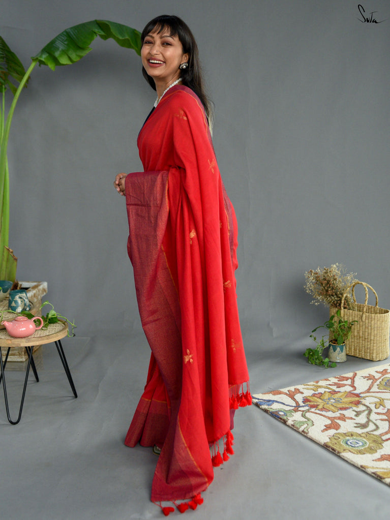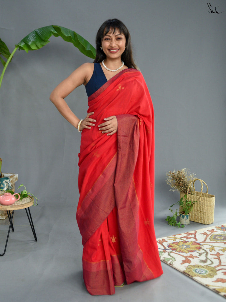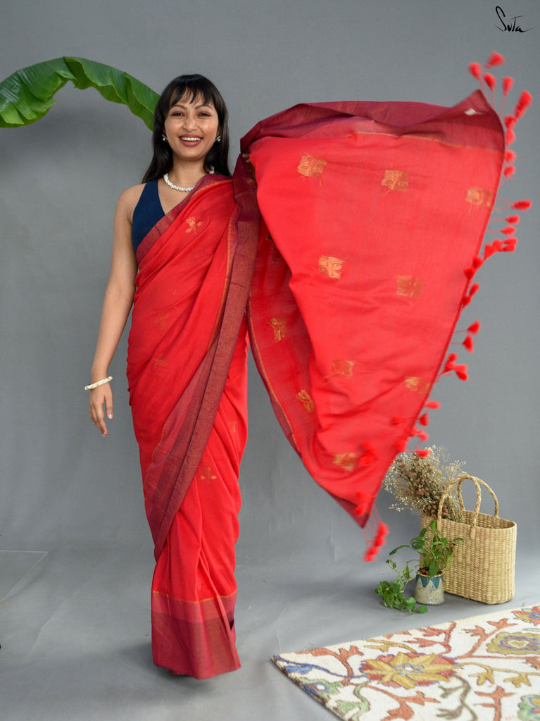 At Suta, we have taken this piece of innovation and made it into our very own fabric by combining modal yarn and made-in-heaven mul yarn together to create a very special product. The coming together of a new-age yarn and the most loved mul yarn is truly a magical thing and the outcome is spectacular. Good clothes are meant to not just make you look good but also make you feel good from inside and this eco-friendly twist to your favourite mul saree will achieve exactly that!