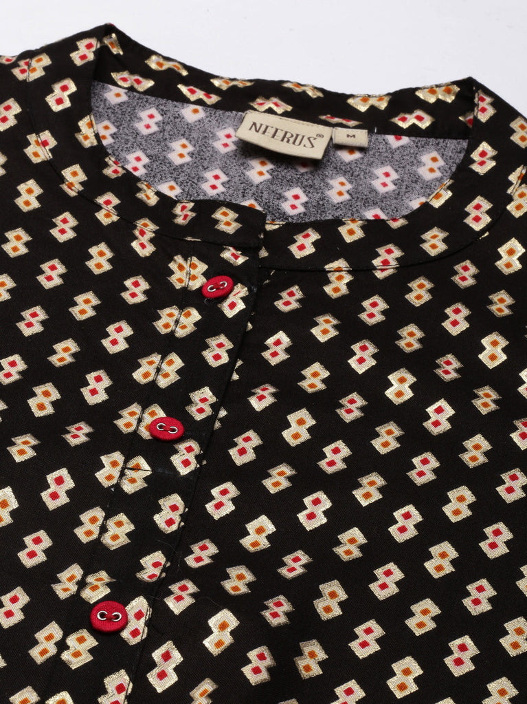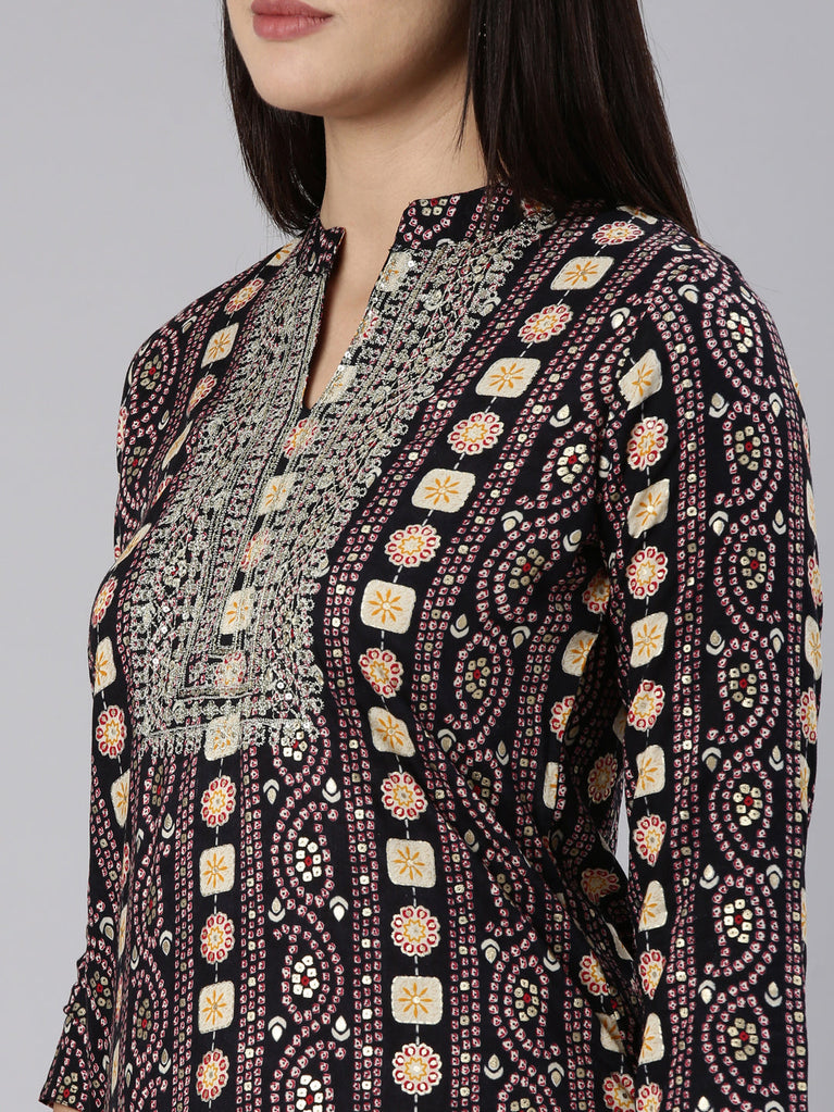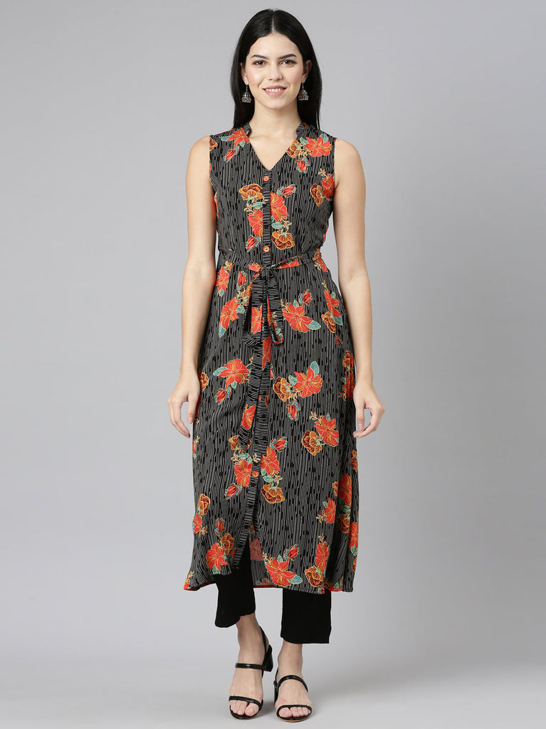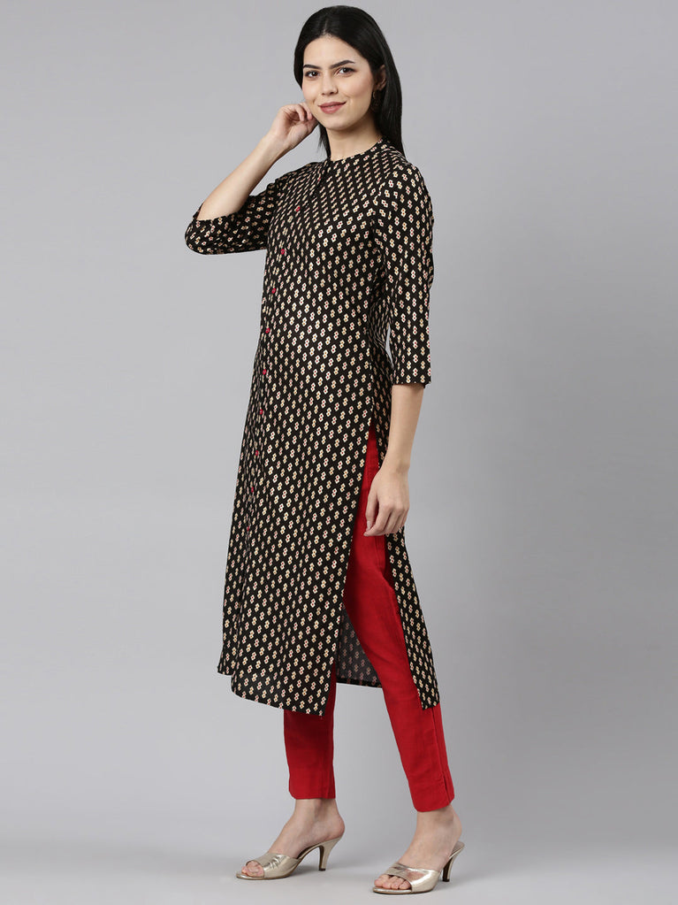 Style Up Your Wardrobe With The Irresistibly Chic Neeru's Black Regular Straight Printed Kurtas!