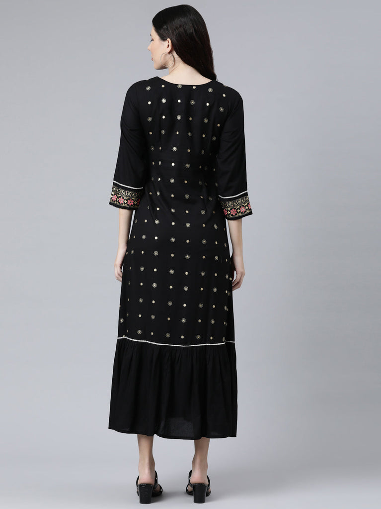 Neeru's Black Flared Casual Printed Fit And Flare Dresses