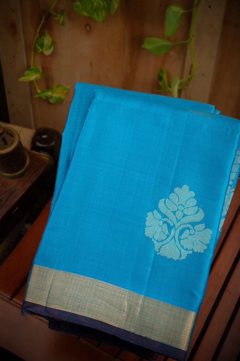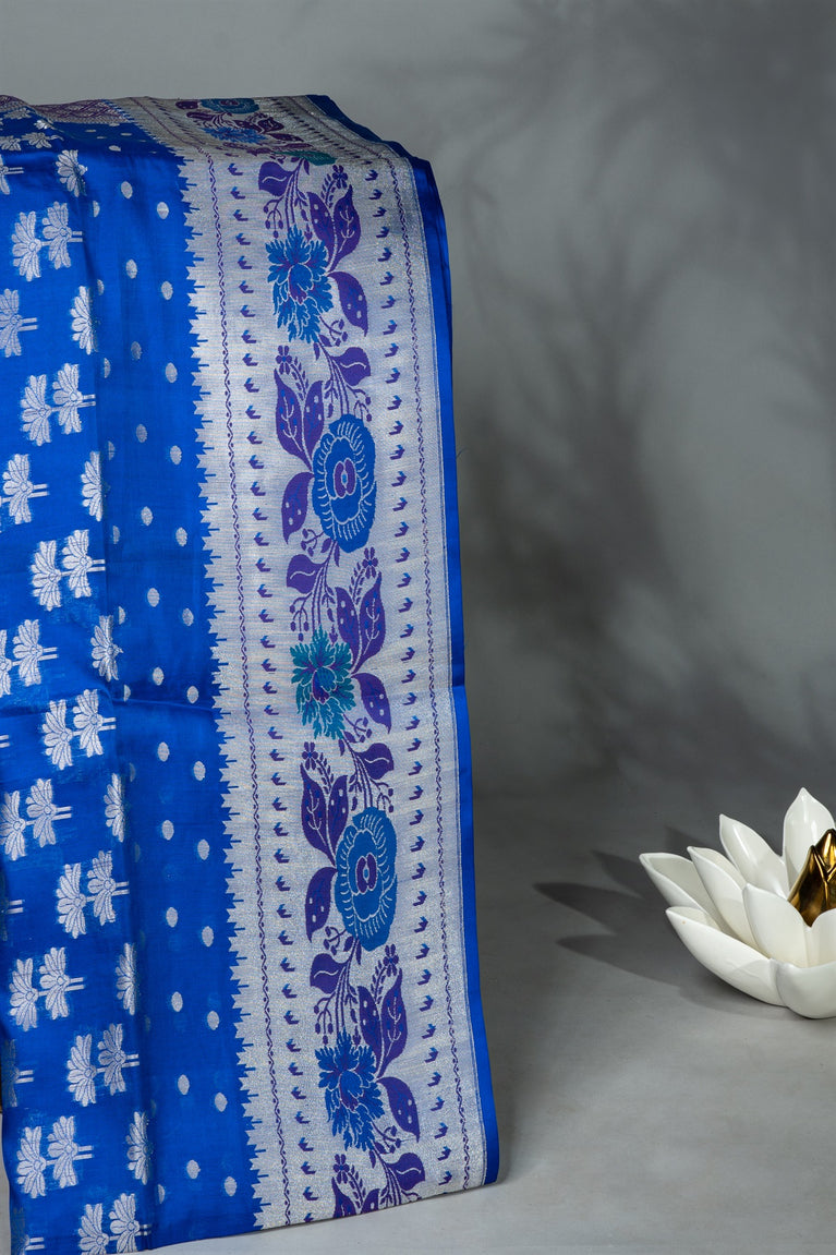 Mandir Blue & Royal Blue Fancy Floral Buttis Saree