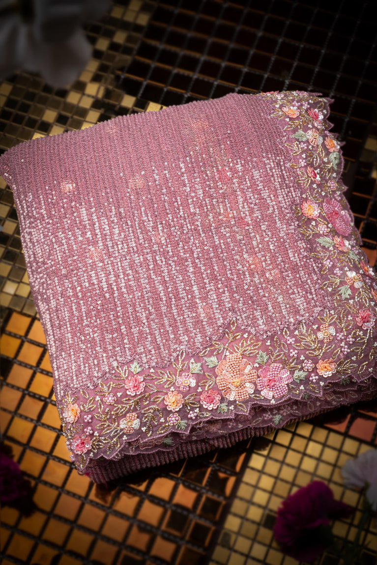 Mandir Blush Pink & Blush Pink Fancy Work Saree