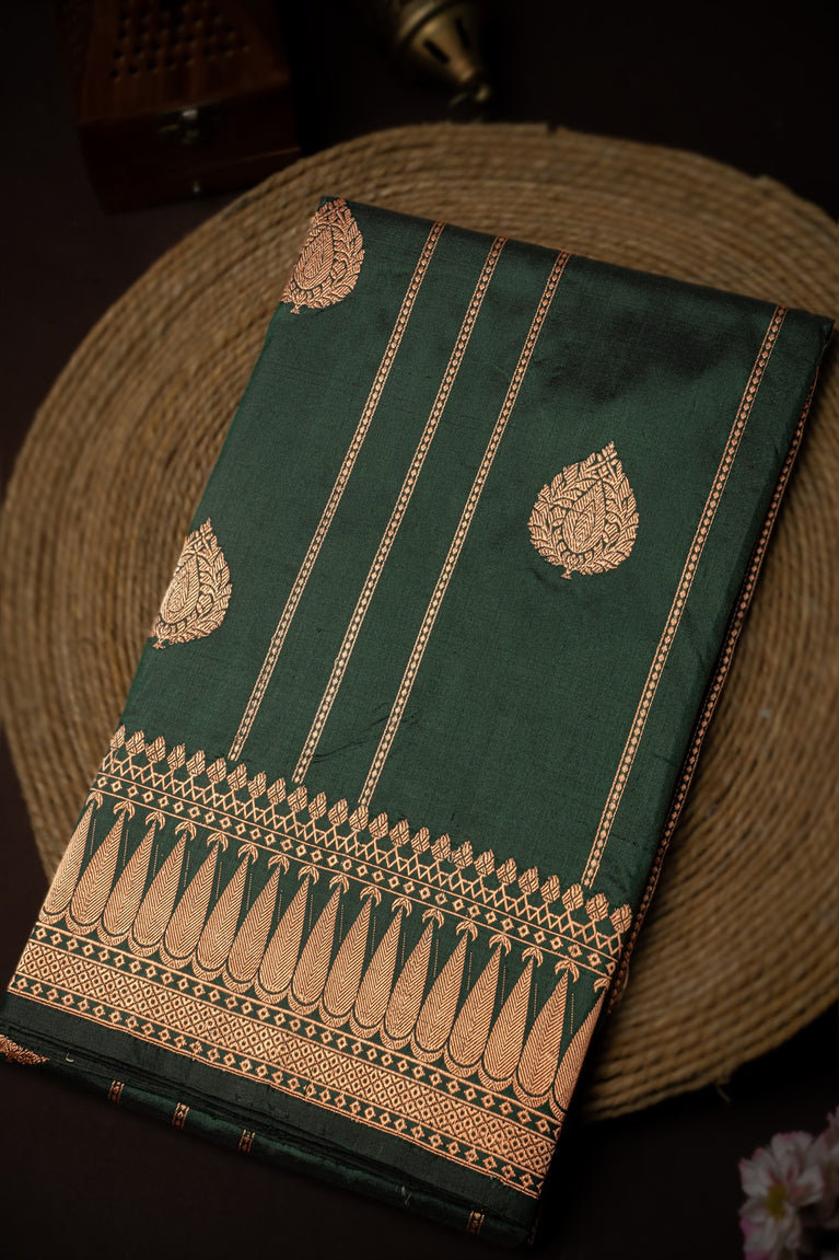 Mandir Bottle Green & Copper Banarasi Motifs Saree