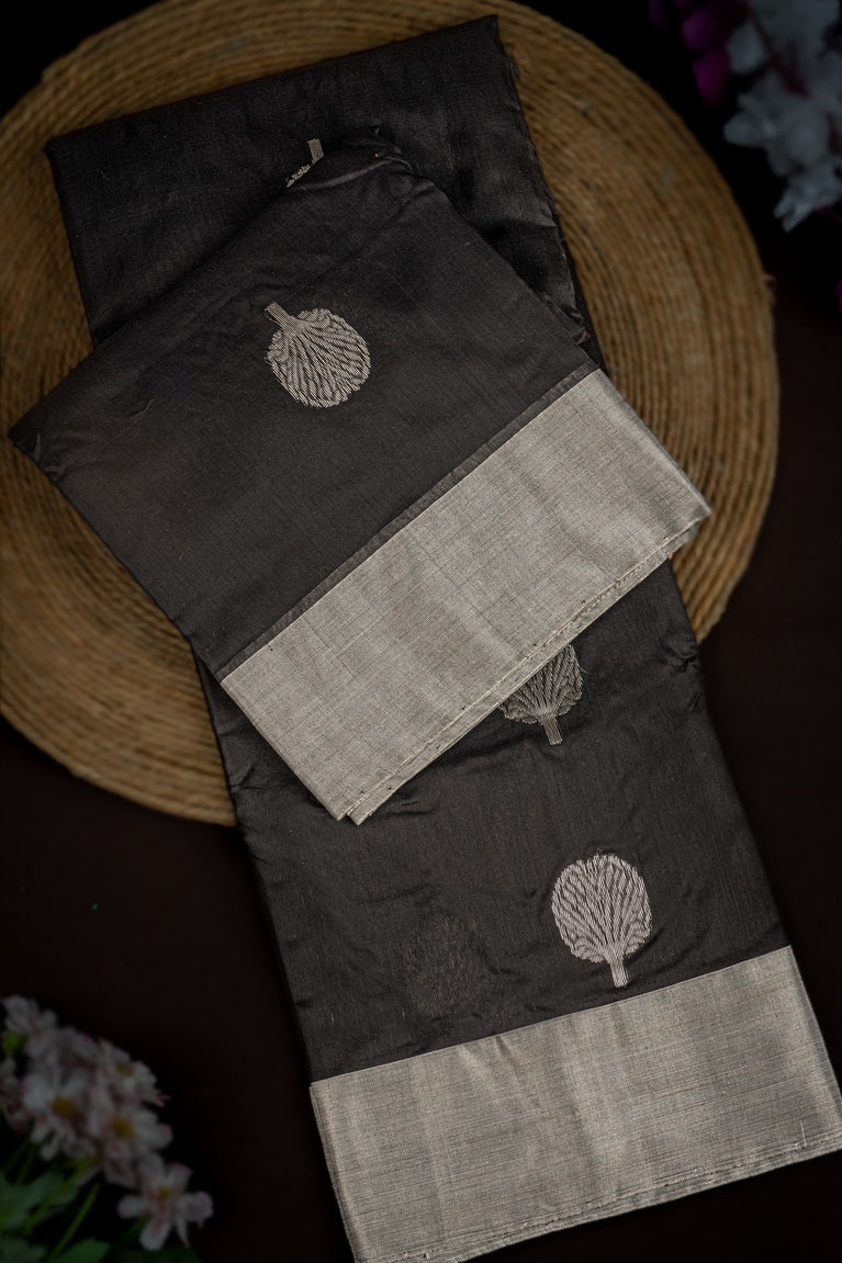 Mandir Black & Silver Chanderi Motifs Saree