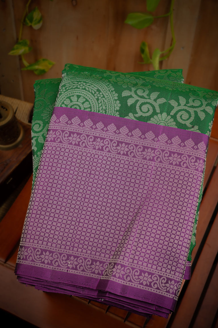 Mandir Bottle Green & Purple Coimbatore All Over Saree
