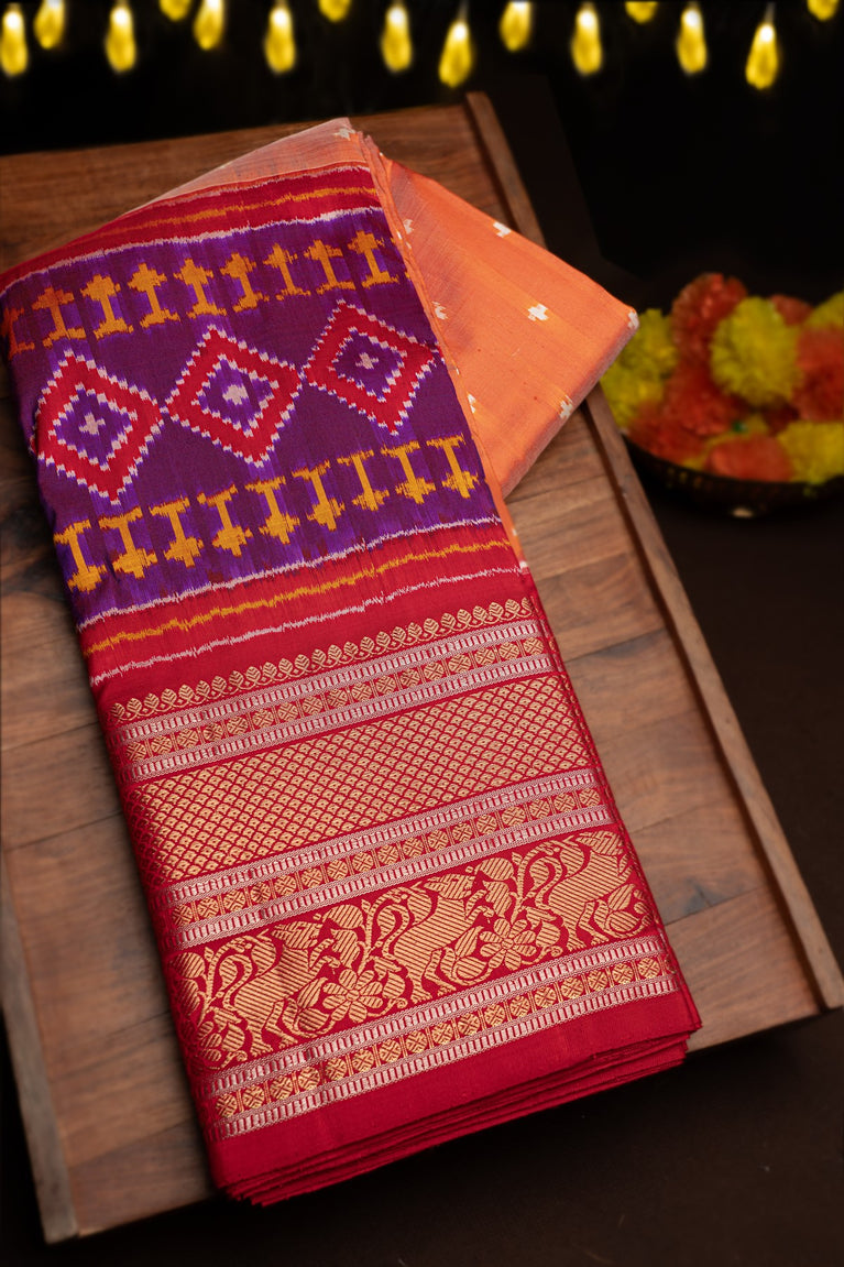 Mandir Coral & Purple Kanchi Ikat Ikat Saree