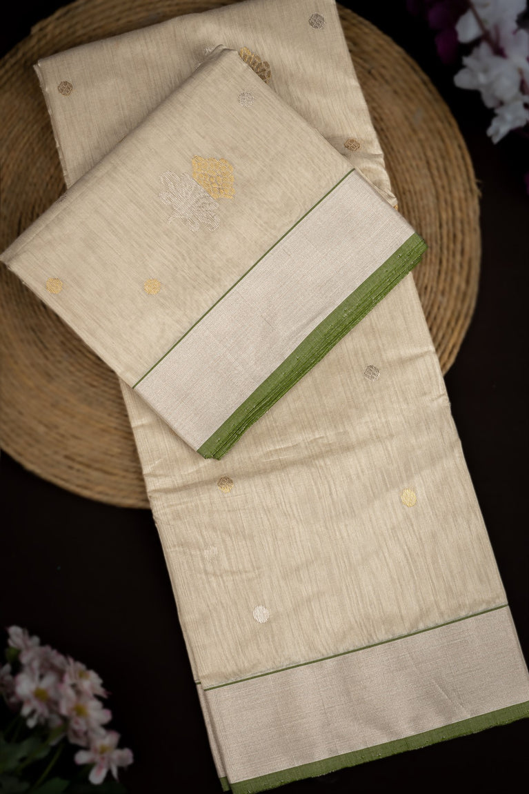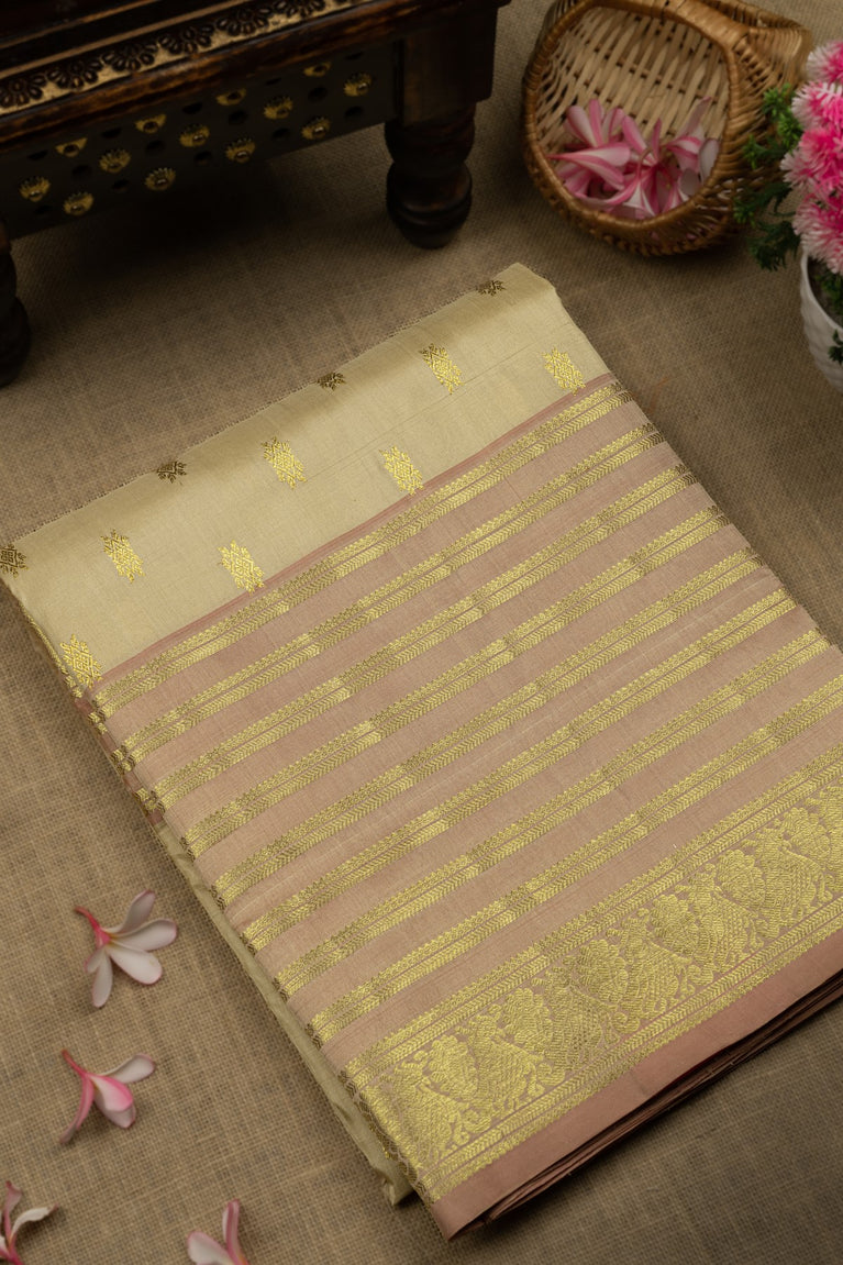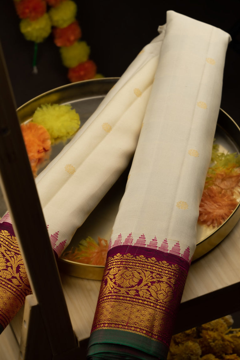 Mandir Cream & Magenta Gadwal Buttis Saree