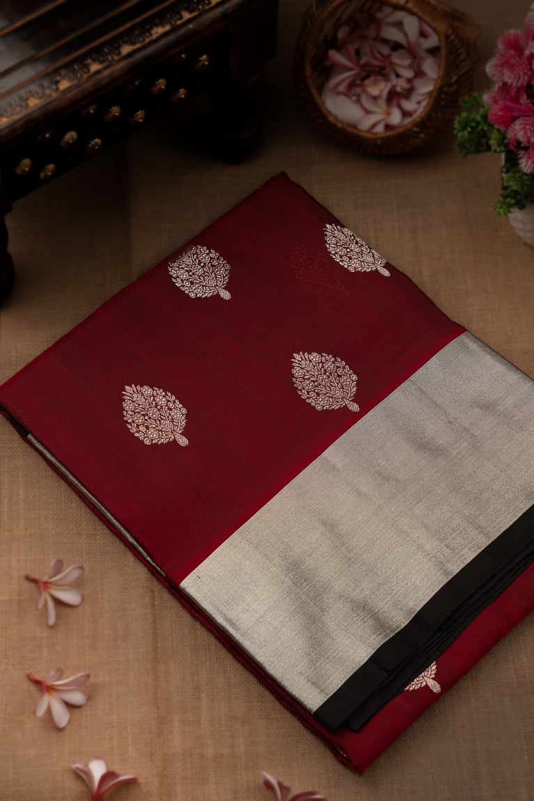 Mandir Cream & Maroon Kuppadam Checks And Buttis Saree