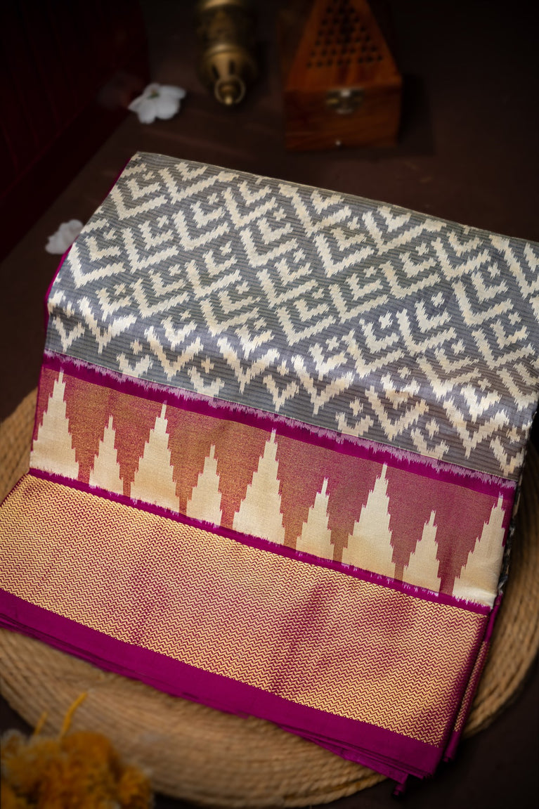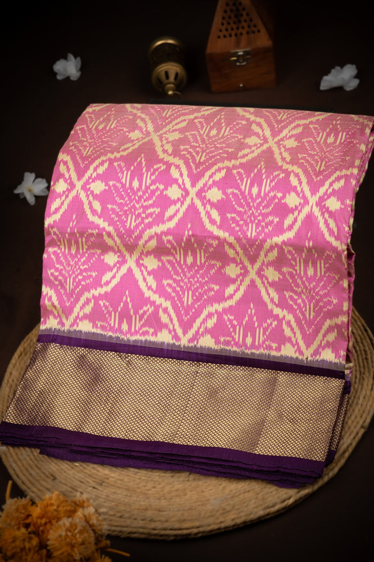 Mandir Bubblegum Pink & Purple Kanchi Ikat Ikat Saree