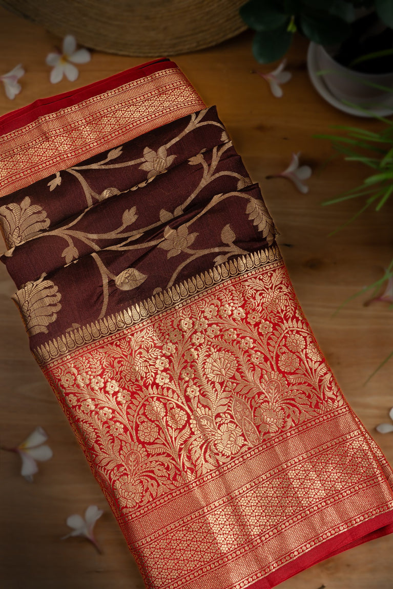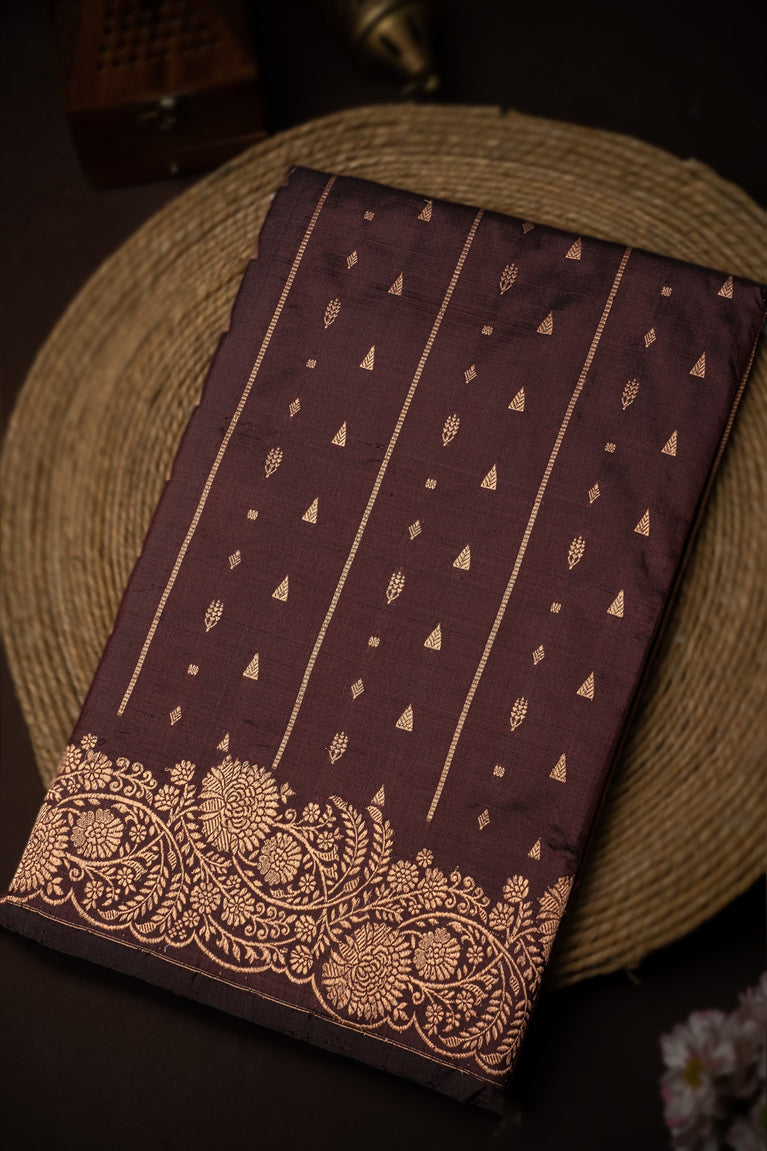 Mandir Brown & Mustard Venkatagiri Motifs Saree