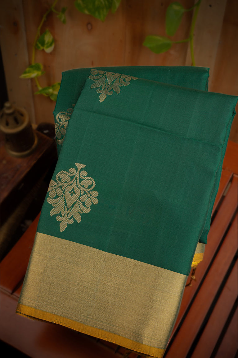 Mandir Bottle Green & Yellow Coimbatore Motifs Saree