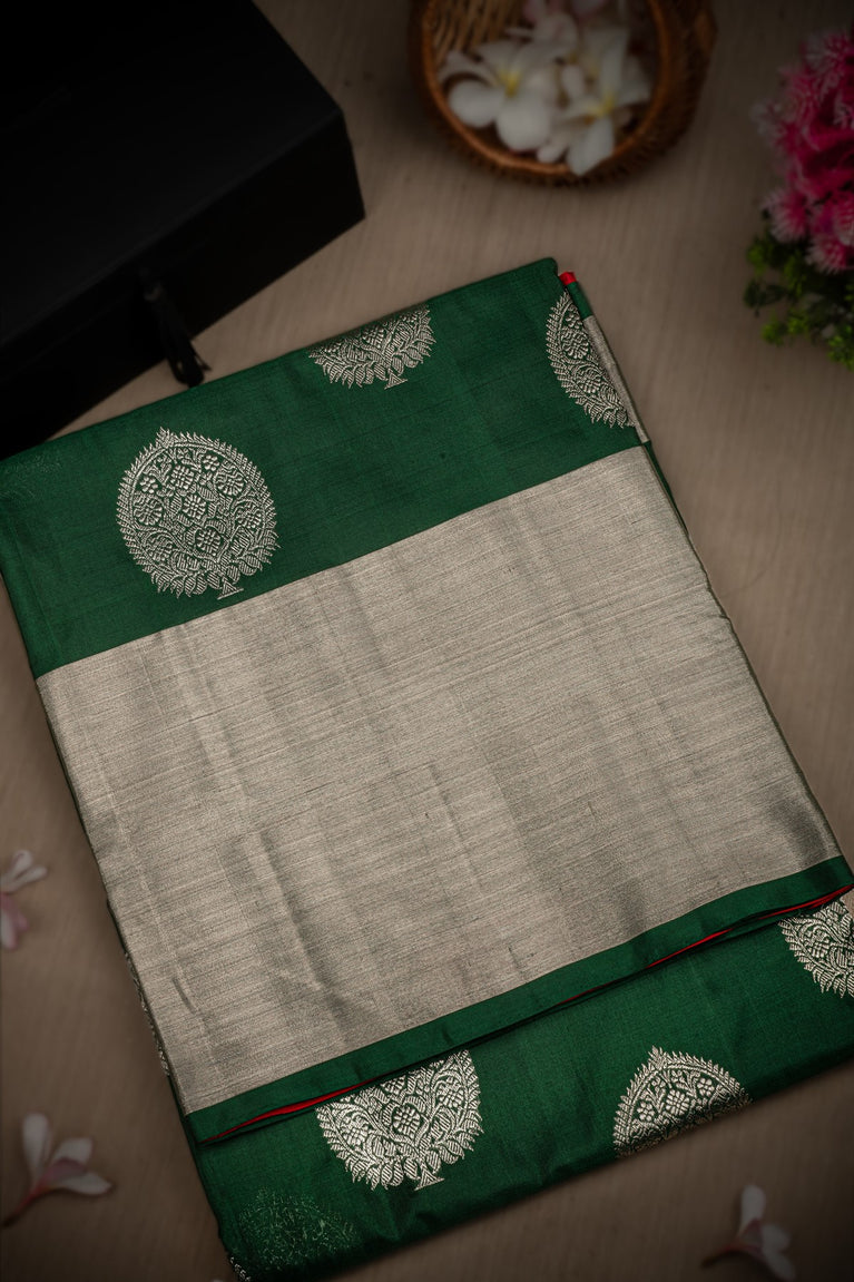 Mandir Bottle Green & Red Venkatagiri Motifs Saree