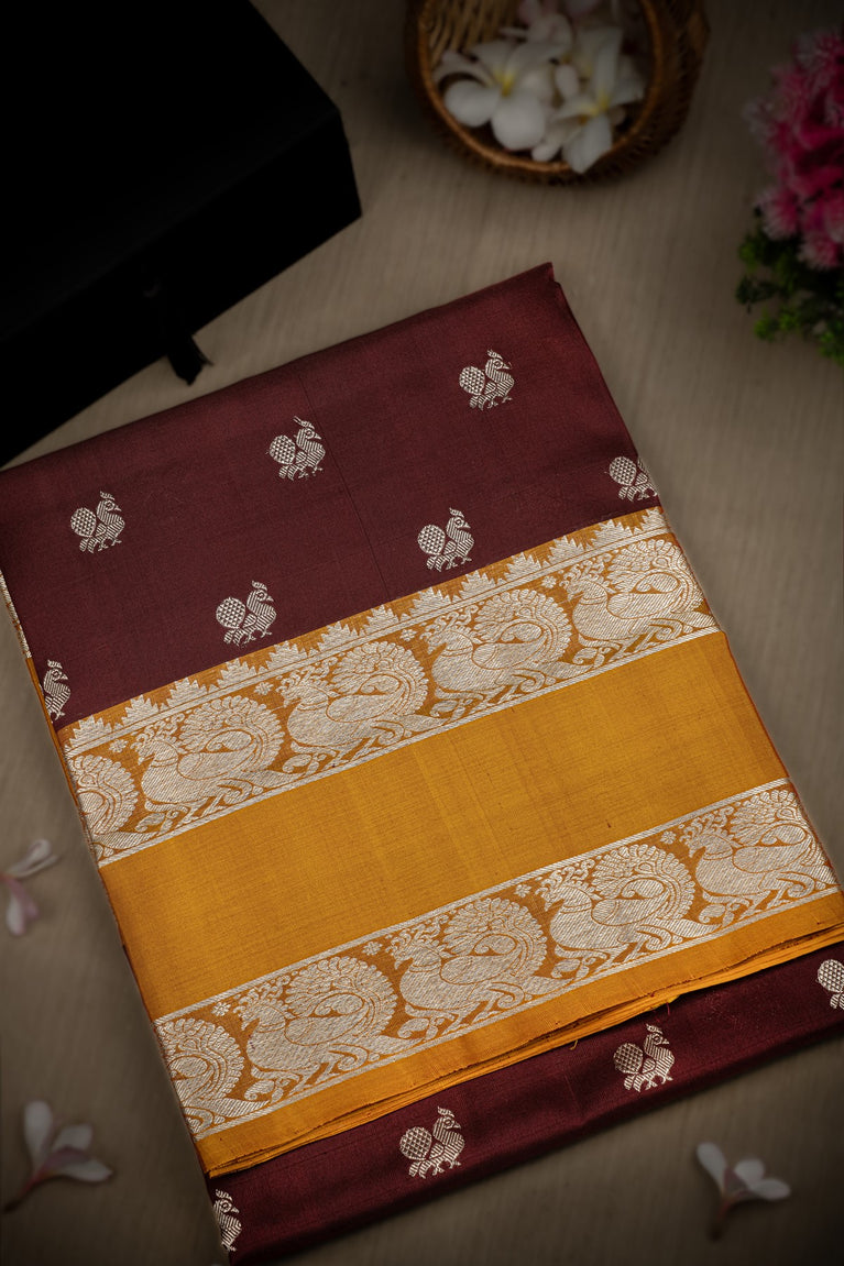 Mandir Brown & Yellow Coimbatore Motifs Saree