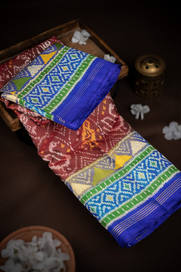Mandir Brown & Royal Blue Patan Patola Ikat Saree