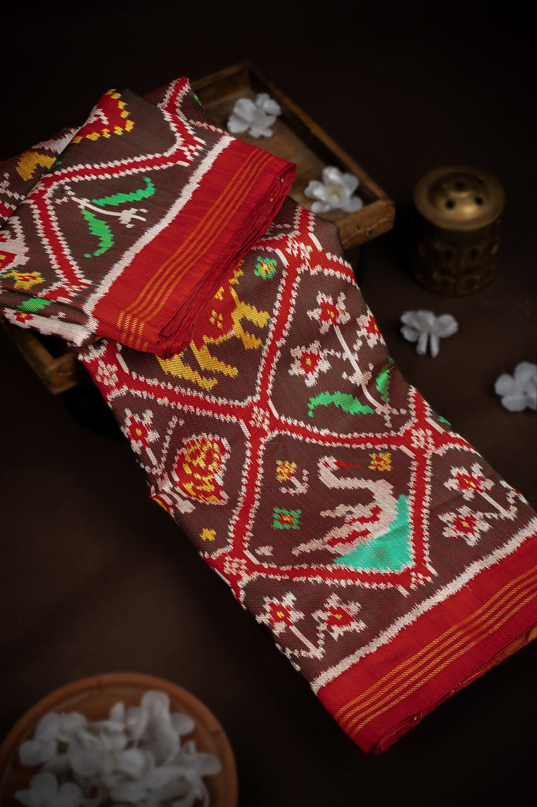 Mandir Brown & Multi-Colour Patan Patola Ikat Saree