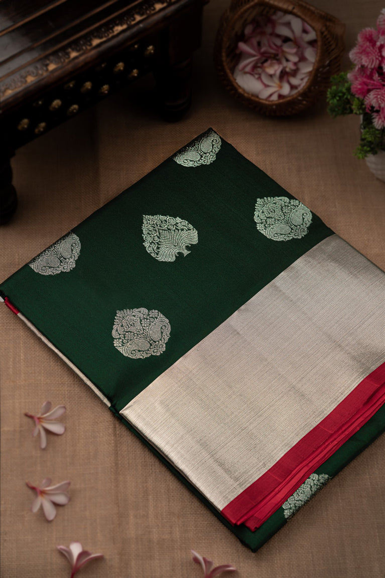 Mandir Dark Green & Silver Uppada Buttis Saree