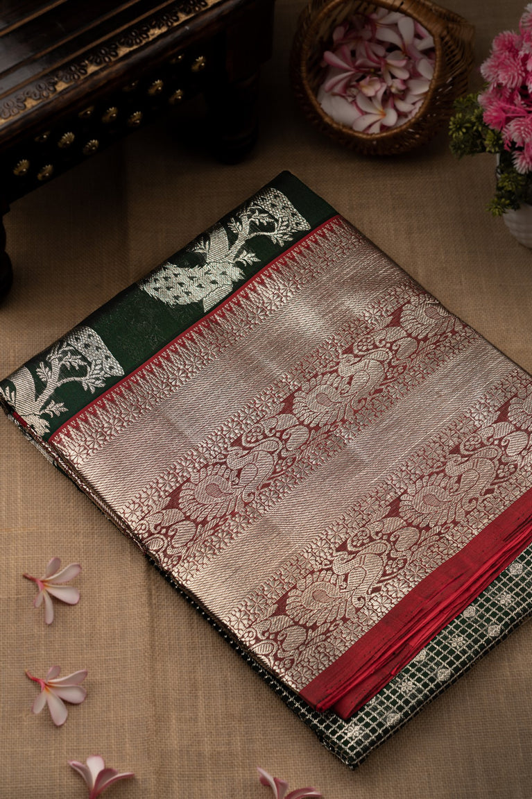 Mandir Dark Green & Maroon Kuppadam Checks And Buttis Saree