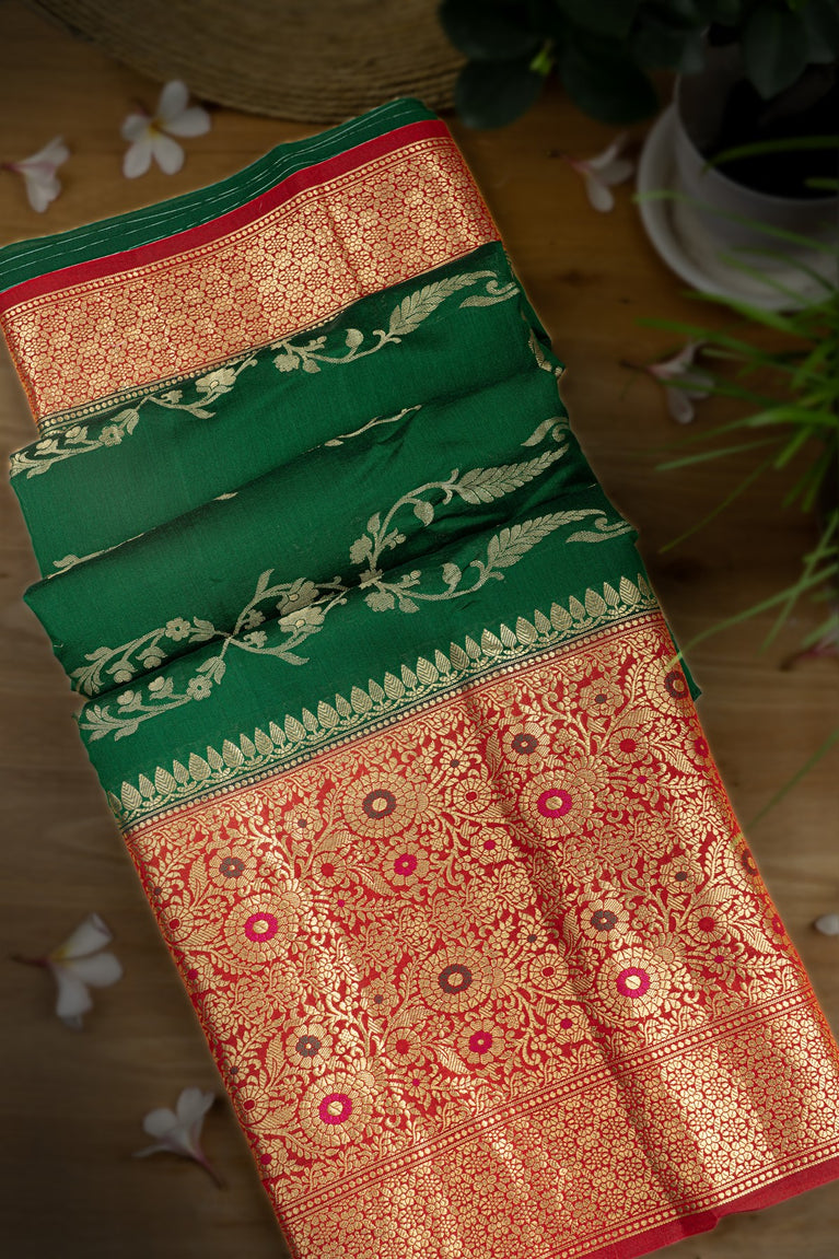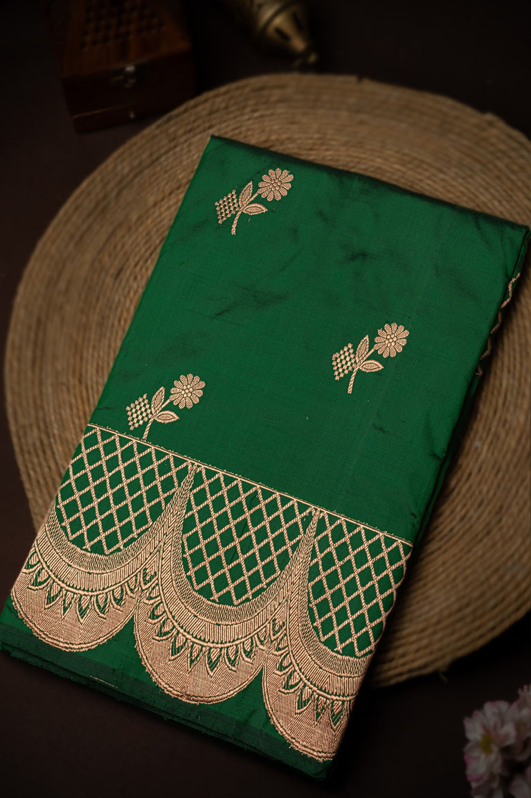 Mandir Dark Green & Dark Green Banarasi Buttis Saree