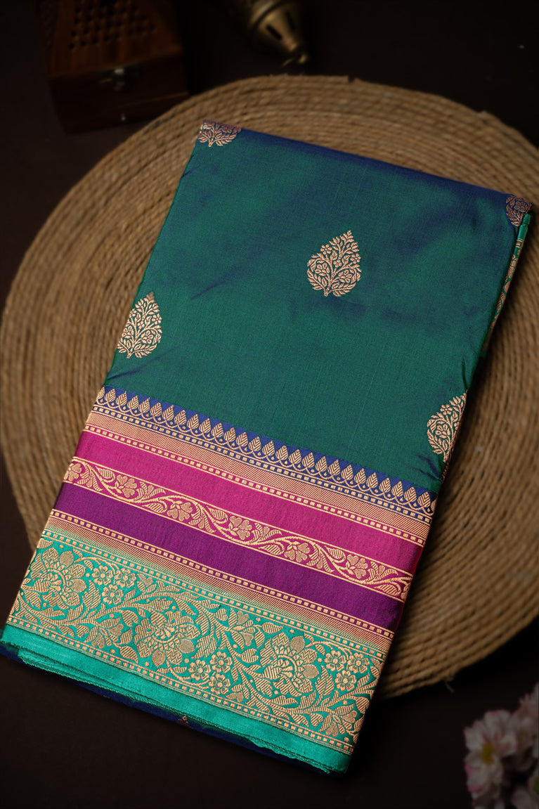 Mandir Dark Green & Blue Gadwal Buttis Saree