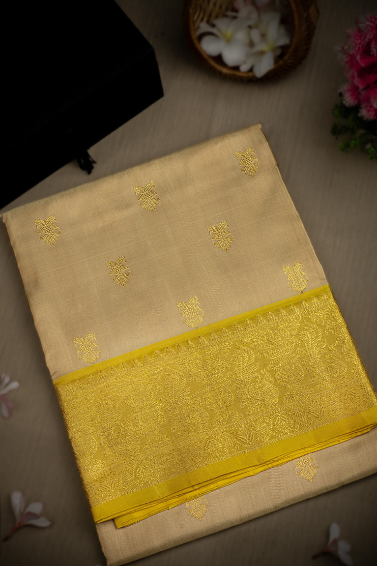 Mandir Cream & Yellow Venkatagiri Motifs Saree