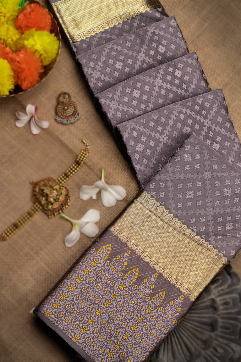 Mandir Grey & Grey Kanchipuram Geometric Saree