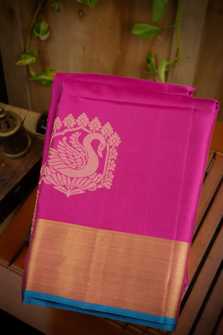 Mandir Deep Magenta & Blue Coimbatore Motifs Saree