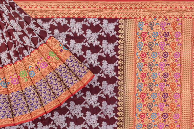 Mandir Magenta & Copper Banarasi Floral Jaal Saree