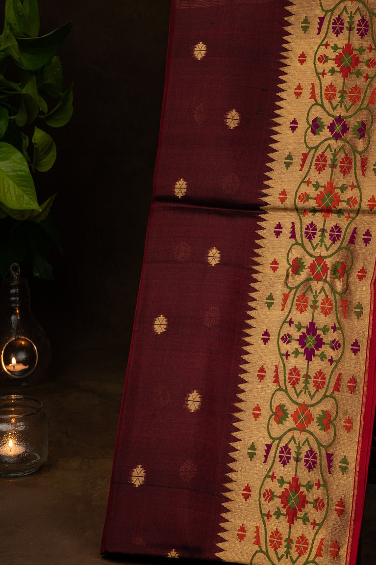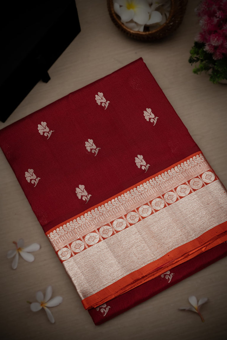 Mandir Maroon & Silver Venkatagiri Buttis Saree