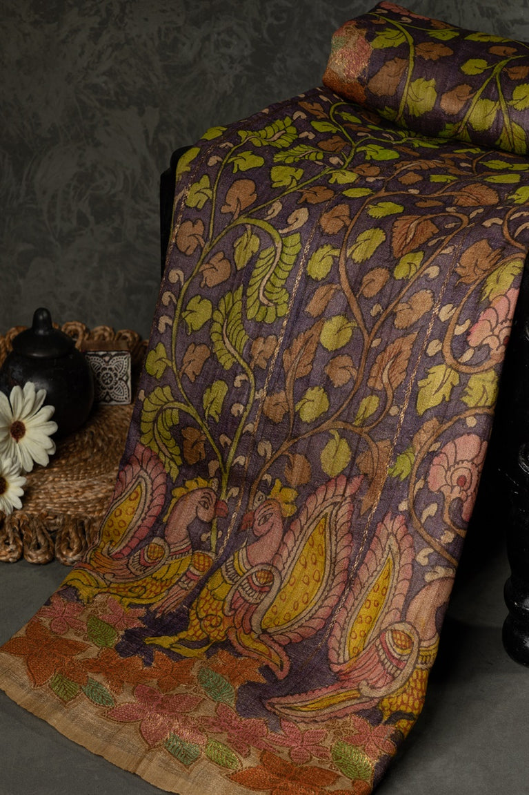 Mandir Mauve & Beige Kalamkari Floral Jaal Saree