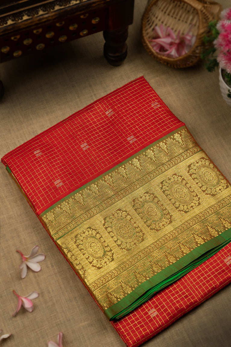 Mandir Maroon & Green Uppada Checks And Buttis Saree
