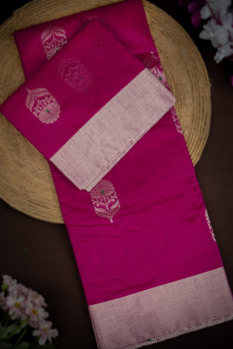 Mandir Magenta & Magenta Chanderi Motifs Saree
