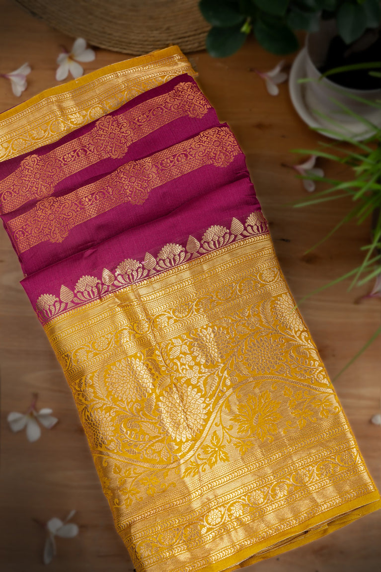 Mandir Magenta & Yellow Fancy Floral Jaal Saree
