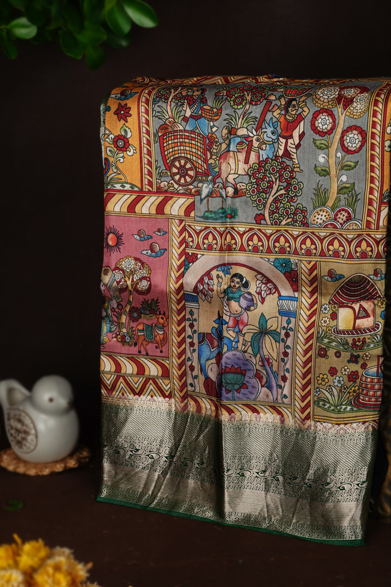 Mandir Multi-Colour & Green Fancy Digital Print Saree