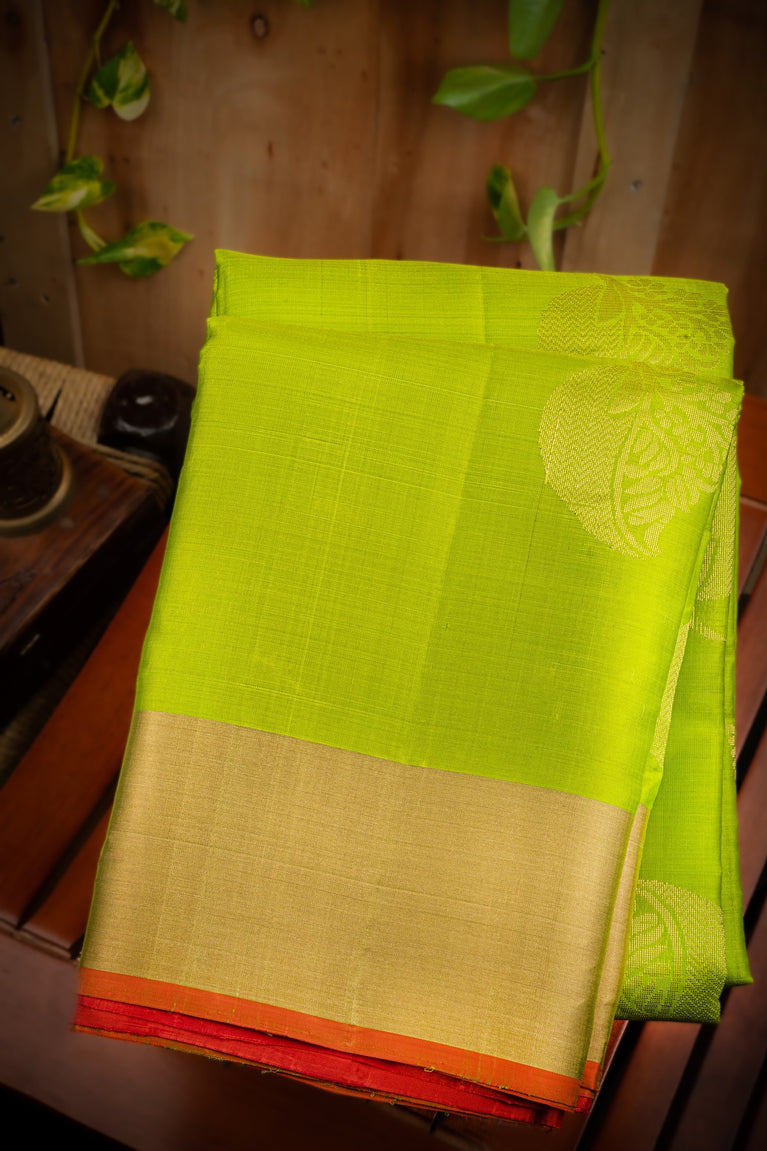 Mandir Mehendi Green & Saffron Coimbatore Motifs Saree