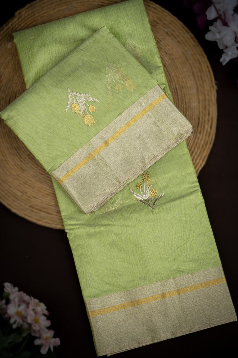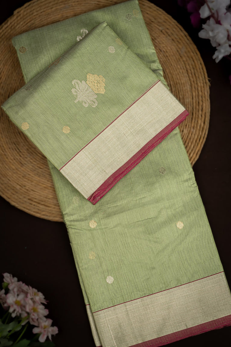 Mandir Pista Green & Gold Chanderi Motifs Saree