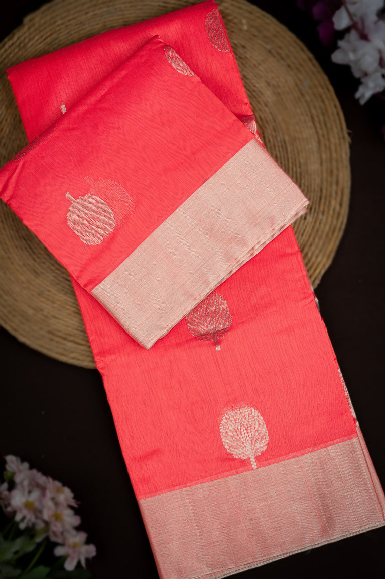 Mandir Pink & Silver Chanderi Motifs Saree