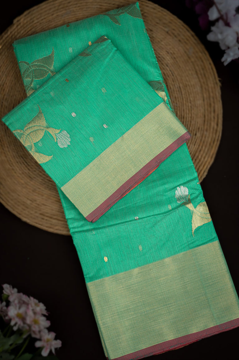 Mandir Sea Green & Gold Chanderi Floral Jaal Saree
