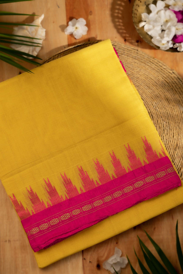 Mandir Yellow & Pink Kanchipuram Jaal Saree