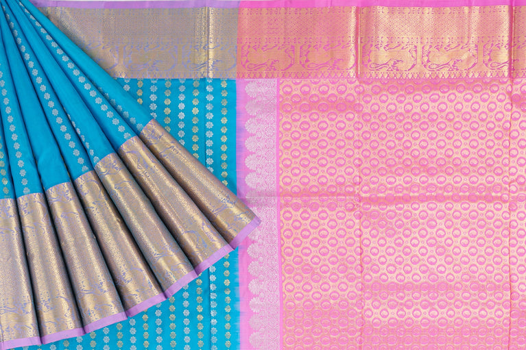 Varamahalakshmi Blue & Magenta Buttis Saree