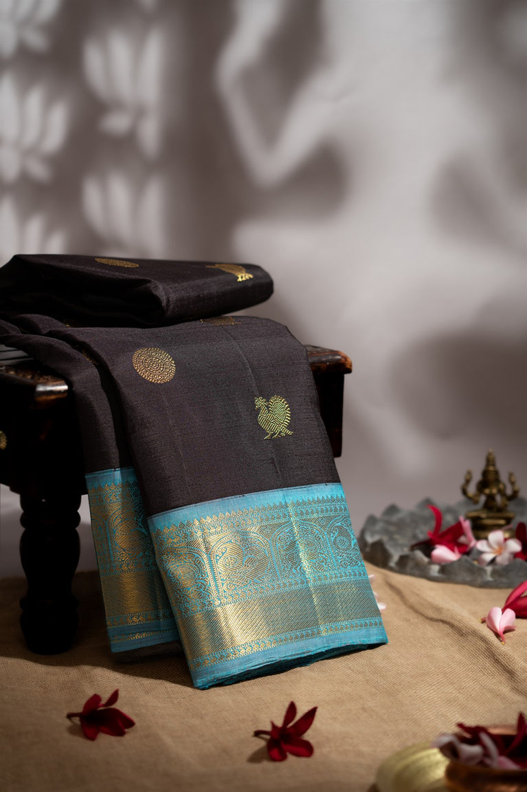 Varamahalakshmi Black & Sea Blue Kanchipuram Buttis Saree